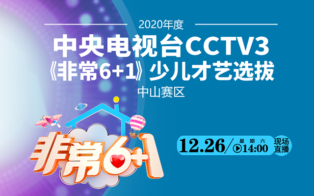 2020年度中央電視臺CCTV3《非常6+1》少兒才藝選拔中山賽區(qū)復賽將于12月26日下午2點舉行,中山日報報業(yè)集團·中山網(wǎng)全程直播,敬請關注!