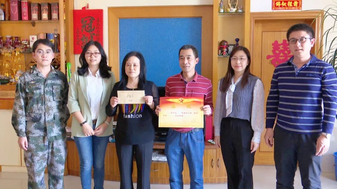 送喜報(bào)是小欖鎮(zhèn)擁軍優(yōu)屬的一項(xiàng)重要工作,將黨和政府對軍人軍屬的關(guān)心送到家中,增強(qiáng)立功受獎家屬的榮譽(yù)感,在全社會營造擁軍優(yōu)屬的濃厚氛圍。鎮(zhèn)武裝部、鎮(zhèn)退役軍人服務(wù)中心的相關(guān)負(fù)責(zé)人感謝家屬為國家培育了優(yōu)秀的士兵,并希望他們繼續(xù)做好軍人的堅(jiān)強(qiáng)后盾,全力支持子女在部隊(duì)安心工作,為國防事業(yè)做出更大貢獻(xiàn)。