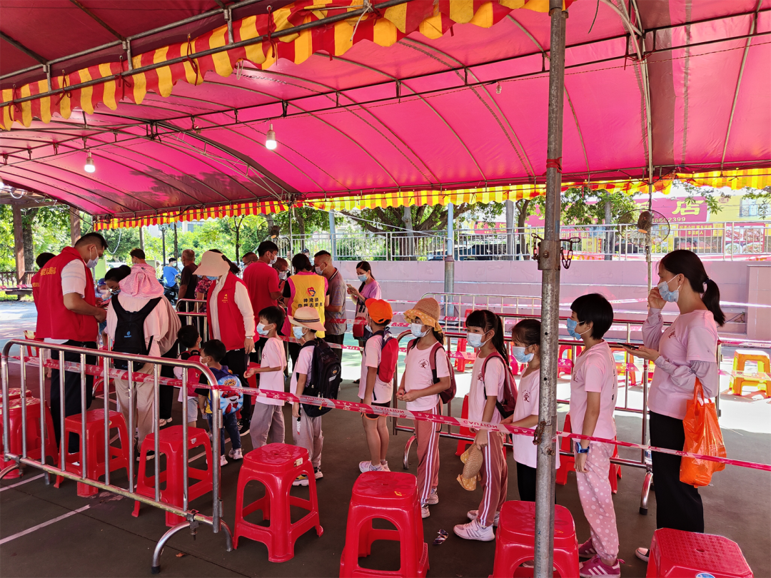 疫情就是命令,防控就是責任。神灣鎮(zhèn)上下聞令而動,黨員干部、醫(yī)護人員、村(社區(qū))工作人、志愿者快速投入戰(zhàn)斗中,共同織密織牢聯(lián)防聯(lián)控“防疫網(wǎng)”。 由于時間緊迫,有的醫(yī)務(wù)人員和各村(社區(qū))工作人員、駐村工作組整個上午連水都沒喝上幾口。為了節(jié)省時間,中午他們在接種點簡單吃個快餐,又開始新的戰(zhàn)斗。 居委會