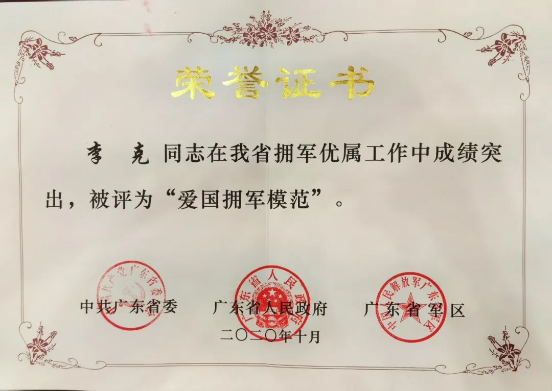 抗疫先鋒,沖鋒在前 2020年春節(jié),李克帶領(lǐng)其退役軍人志愿服務(wù)團(tuán)隊(duì)積極響應(yīng)市委、市政府號(hào)召,從大年初四開始,一直堅(jiān)持奮戰(zhàn)在社區(qū)防疫第一線,協(xié)助東區(qū)街道派發(fā)防疫宣傳單張、開展上門排查、隔離酒店配餐、卡口值勤等,他本人更是連續(xù)奮戰(zhàn)60天,平均每天7-8小時(shí),志愿服務(wù)時(shí)數(shù)達(dá)460多個(gè)小時(shí),全隊(duì)志愿服務(wù)時(shí)數(shù)達(dá)到3800多個(gè)小時(shí)。同時(shí),他四處籌集防疫物資,向市人民醫(yī)院、疫區(qū)部隊(duì)醫(yī)院、一線民警、學(xué)校和社區(qū)捐贈(zèng)防護(hù)服、防護(hù)口罩以及防護(hù)手套等合計(jì)5萬(wàn)多元。在李克的發(fā)動(dòng)下,東區(qū)退役軍人紅旗志愿服務(wù)隊(duì)從成立之初的10余人發(fā)展到現(xiàn)在有200多人的志愿隊(duì)伍。因防疫工作突出,東區(qū)退役軍人紅旗志愿服務(wù)隊(duì)獲得了省、市多項(xiàng)榮譽(yù)表彰。 李克說(shuō),獲得“廣東省愛(ài)國(guó)擁軍模范”稱號(hào)殊榮,是他一生的榮光,他將始終保持著感恩的心,視榮譽(yù)如生命,繼續(xù)秉承老一輩的光榮傳統(tǒng),擦亮退役軍人真本色,全面推廣紅色基因和革命光榮傳統(tǒng)教育?!爸灰獓?guó)家和人民群眾有需要,我將義無(wú)反顧沖鋒在前當(dāng)‘尖’兵?!?/p> |