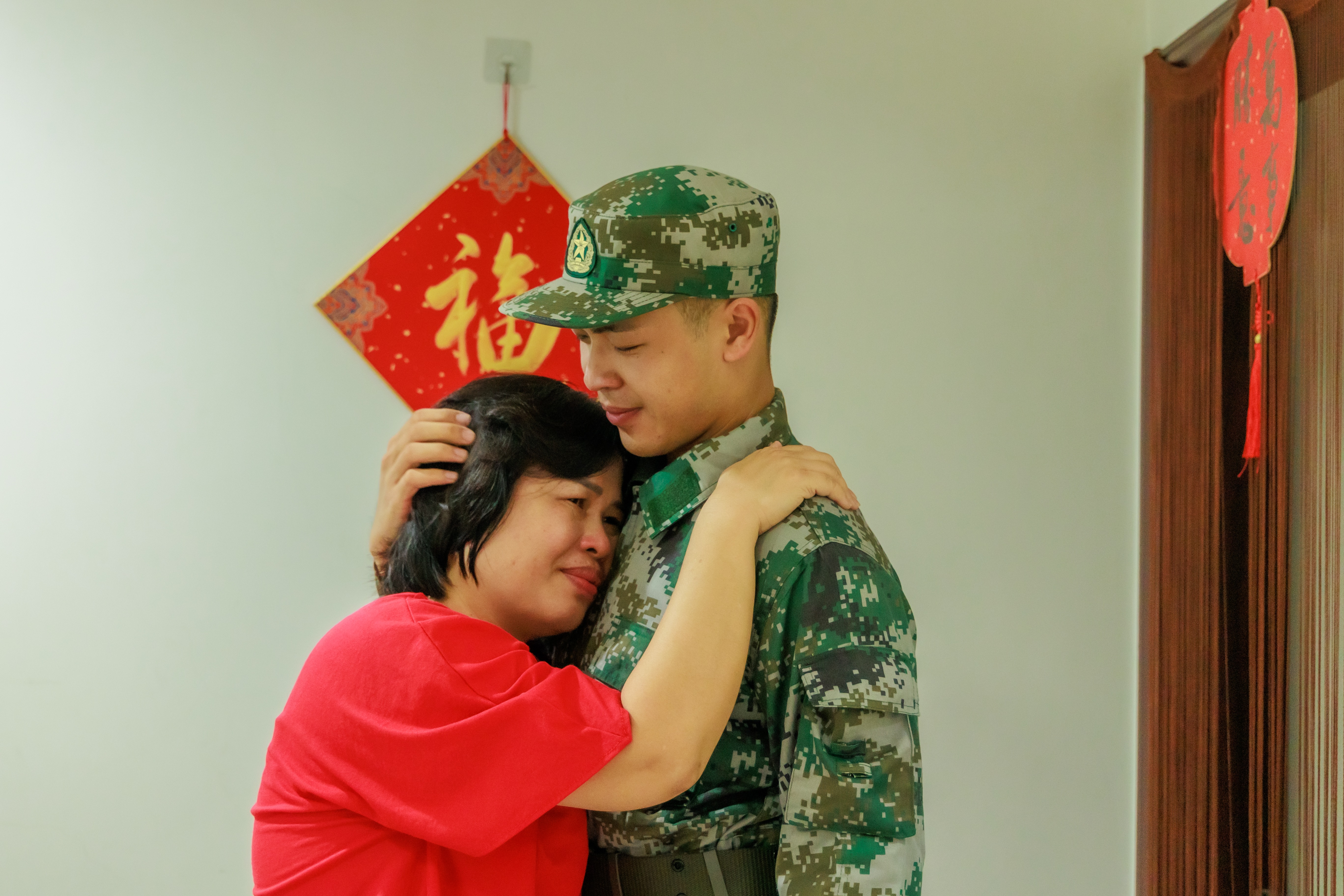 楊尚霖與母親惜別。馬衛(wèi)星 攝 2002年出生的楊尚霖來自東區(qū)街道東裕社區(qū)。小時(shí)候,楊尚霖就跟著家里人看抗戰(zhàn)、軍旅題材的電視劇。耳濡目染之下,他羨慕軍人擁有鋼鐵般的意志。他的外公是一名退役軍人,老人家最大的愿望便是4個(gè)孫子中有人能夠參軍報(bào)國(guó)。外孫楊尚霖是家中最小的,3個(gè)哥哥因種種原因都遺憾無緣軍營(yíng)。外公將后輩的從軍夢(mèng)寄托在了楊尚霖身上。