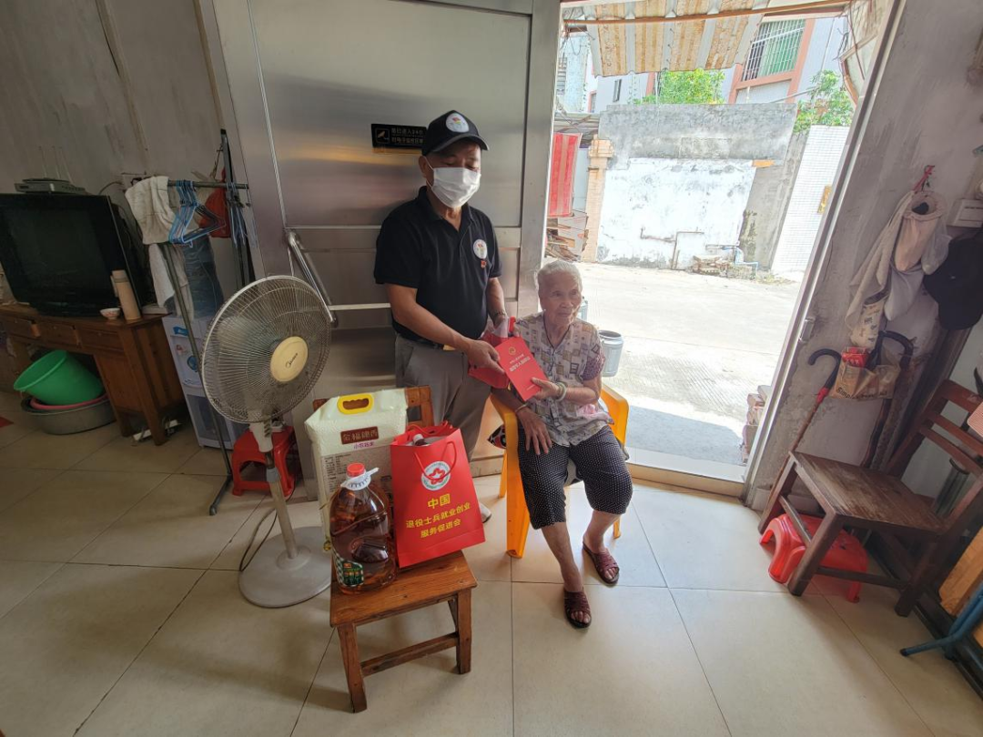 為弘揚愛國主義精神,發(fā)揚退役軍人志愿者擁軍優(yōu)屬的光榮傳統(tǒng),表達(dá)對退役軍人的崇敬和關(guān)愛,古鎮(zhèn)鎮(zhèn)退役軍人服務(wù)中心與鎮(zhèn)退役軍人紅旗志愿服務(wù)隊在“八一”建軍節(jié)來臨之際開展節(jié)日慰問活動,對15戶困難退役軍人家庭和7戶烈屬進(jìn)行走訪慰問。 7月27日-29日,鎮(zhèn)退役軍人紅旗志愿服務(wù)隊隊員利用休息時間深入各村(居),帶著米、油、飲料等生活用品走進(jìn)困難退役軍人家庭和烈屬家中。 每到一處,退役軍人紅旗志愿者們與退役軍人及其家屬親切交談,詢問他們的身體狀況和生活情況,并詳細(xì)了解他們目前的實際困難和需求,感謝他們?yōu)閲液蜕鐣龀龅呢暙I(xiàn),囑咐他們要以積極的心態(tài)面對困難,高溫天氣下注意飲食和防暑,同時宣傳普及《退役軍人保障法》。