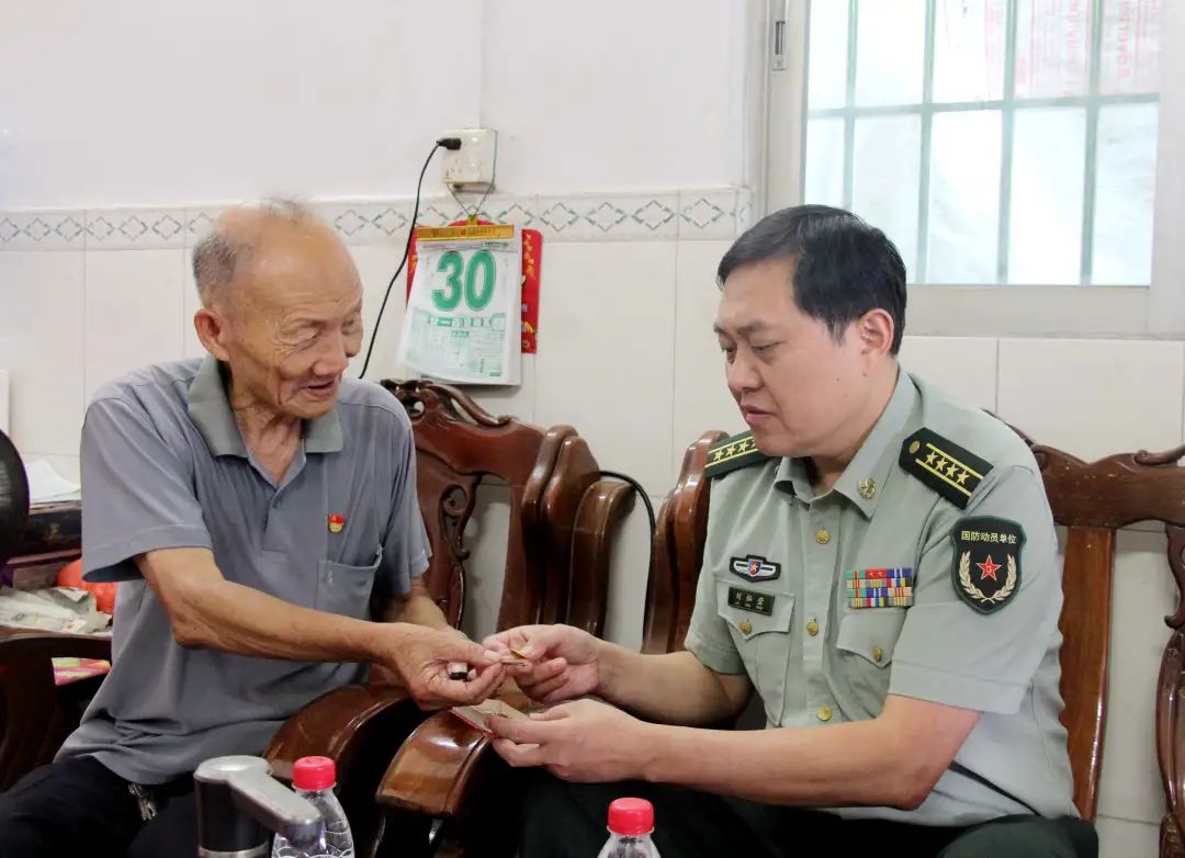 在“八一”建軍節(jié)即將到來之際,7月30日上午,市委常委、中山軍分區(qū)政委劉燦瑩來到橫欄鎮(zhèn),走訪慰問部分退役軍人,為他們送去黨和政府的親切關(guān)懷,祝福他們建軍節(jié)快樂、身體健康、家庭幸福。鎮(zhèn)領(lǐng)導(dǎo)林培華、葉劍榮、高桂冰等陪同慰問。 周七友,今年80歲,是橫欄鎮(zhèn)橫東村一名有著54年黨齡的退伍老兵。1959年,18歲的周七友參軍入伍,成為一名軍人。1968年,周七友光榮退伍。 1959年到1968年,周七友獲得了許多獎項與勛章,這些勛章他都悉心保存,非常有意義和價值。 “這幾枚是'五好戰(zhàn)士'稱號徽章。當年戰(zhàn)士們積極響應(yīng)黨中央號召,爭當'五好戰(zhàn)士'。'五好'是指:政治思想好,三八作風(fēng)好,軍事技術(shù)好,完成任務(wù)好,鍛煉身體好”,多年過去了,周七友還清楚記得“五好”的具體內(nèi)容?!斑€有這一枚是‘技術(shù)能手’稱號徽章,當時我能夠熟練地拆裝一整部車,所以就獲得了這枚‘技術(shù)能手’稱號徽章。這枚徽章我們一個班只有我獲得了。”