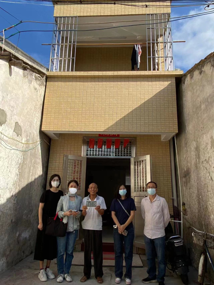 這是中山市退役軍人事務(wù)部門開展2022年退役軍人危房改造的一個縮影。據(jù)悉,中山市連續(xù)14年累計投入近億元為1200多戶優(yōu)撫對象改造危房,聚焦著力解決他們住房安全短板,確保“老有所居,居有所樂”。相關(guān)工作經(jīng)驗得到了廣東省退役軍人事務(wù)廳的專門推介。  沙溪鎮(zhèn)退役軍人劉叔在新房前開心地展示門牌號。 (市退役軍人事務(wù)局供圖)