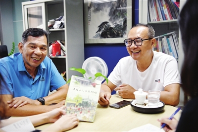 ▲“珠縱后代”黃躍進(右)和蕭亮忠(左)被聘為五桂山首批國防教育輔導(dǎo)員,讓紅色精神代代傳。