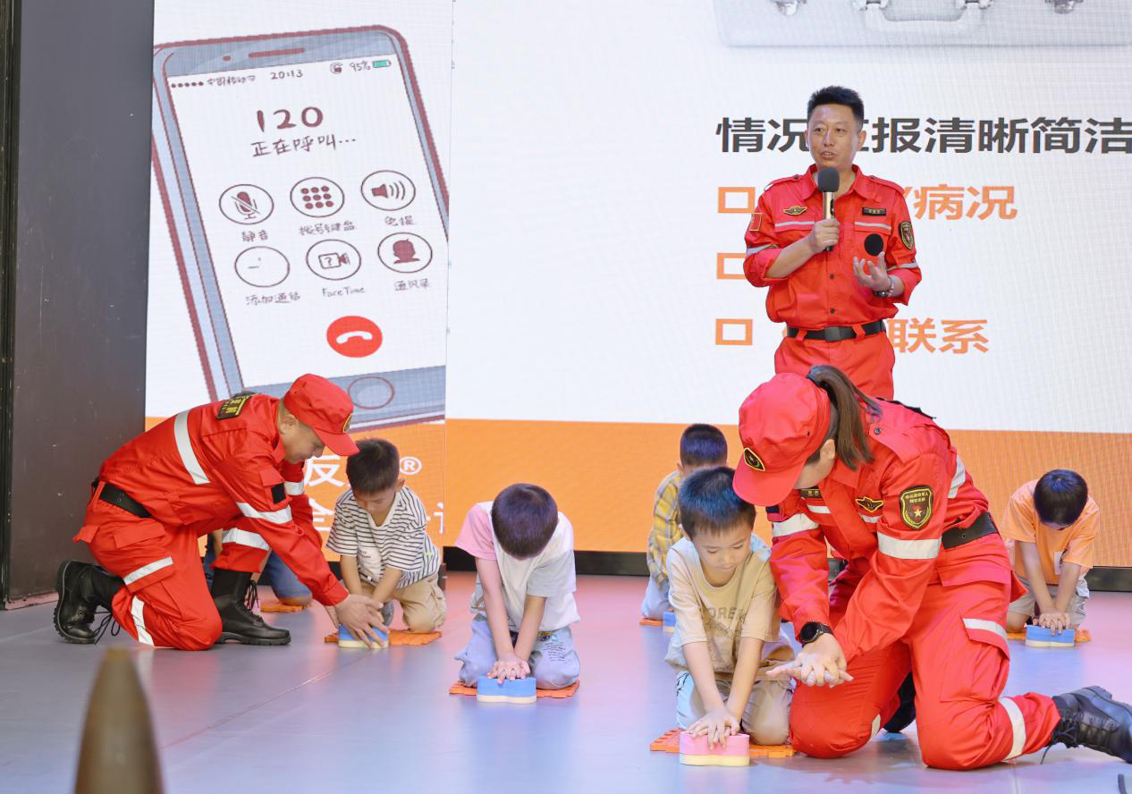 中山市擁軍支前紅旗服務隊隊長孫宏寧通過安全教育宣傳片、實際案例、情景模擬、互動問答等形式,從應急救護、如何進行心肺復蘇、120呼叫需要提何種信息等與青少年生活息息相關的內(nèi)容為小營友們講授暑期“安全第一課”,讓安全意識、安全技能深入到在場每位學生、每個家庭,希望小營友們在快樂過暑假的同時安全不“放假”。  國防教育現(xiàn)場。