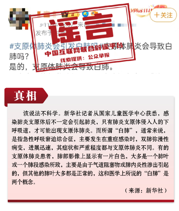 謠言1:感染肺炎支原體一定會(huì)得肺炎?會(huì)出現(xiàn)“白肺”?