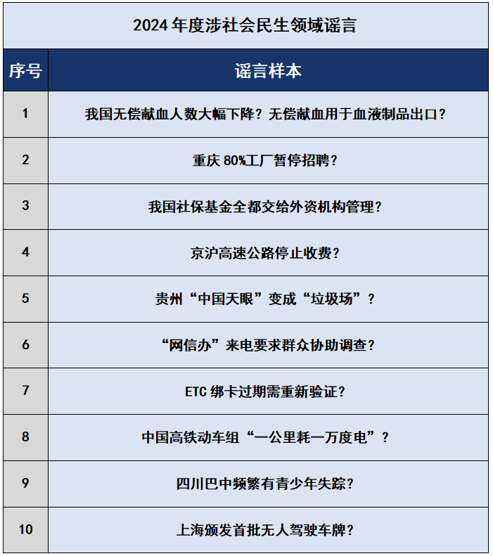 2024年2月,個(gè)別自媒體發(fā)出“無償獻(xiàn)血人數(shù)大幅下降,無償獻(xiàn)血用于血液制品出口”的不實(shí)言論,利用全社會(huì)對(duì)公益事業(yè)的關(guān)注和信息不對(duì)稱誤導(dǎo)公眾,故意抹黑我無償獻(xiàn)血政策,影響血液采集正常秩序,引發(fā)公眾對(duì)無償獻(xiàn)血的誤解。一些別有用心之人惡意編造謠言“我國社保基金全都交給外資機(jī)構(gòu)管理”,抓住社?;鸸芾碇械牟糠终:献鬟M(jìn)行夸大和錯(cuò)誤解讀,以偏概全、歪曲事實(shí),引發(fā)公眾對(duì)社保體系的擔(dān)憂和恐慌。還有一些自媒體夸大其詞、虛構(gòu)數(shù)據(jù),捏造謠言“重慶80%工廠暫停招聘”,干擾勞動(dòng)力市場(chǎng)正常秩序,影響地區(qū)經(jīng)濟(jì)發(fā)展。所謂“‘網(wǎng)信辦’來電要求群眾協(xié)助調(diào)查”則實(shí)為詐騙分子冒充權(quán)威機(jī)構(gòu)行騙,嚴(yán)重?fù)p害政府部門的公信力。