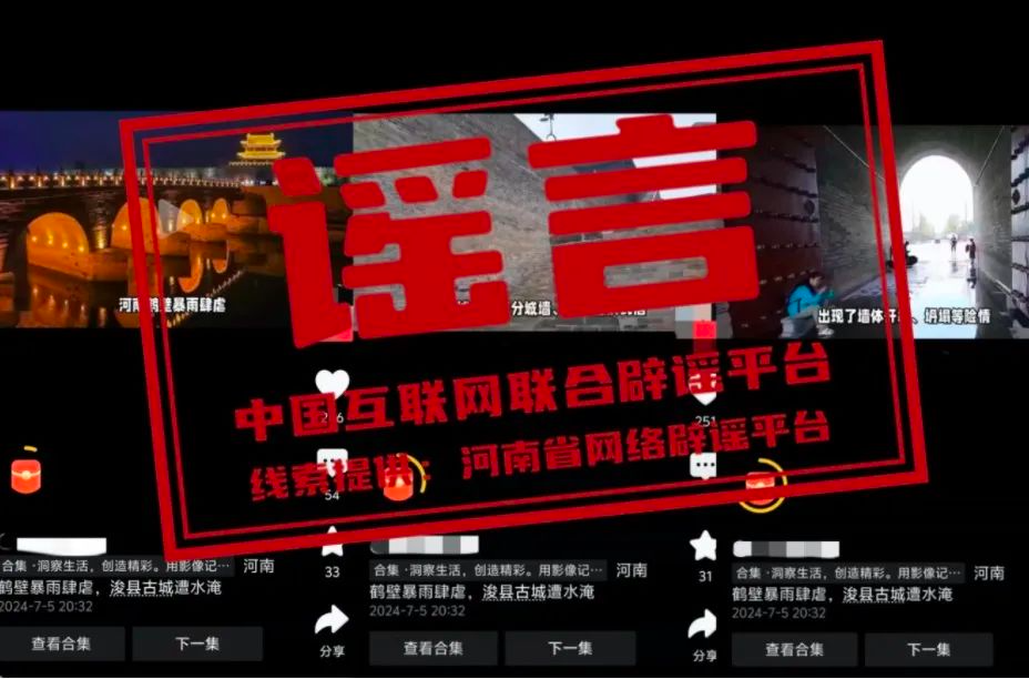 真相:近日,有網(wǎng)民在網(wǎng)絡(luò)平臺發(fā)布內(nèi)容為“河南鶴壁暴雨肆虐,??h古城遭水淹”的視頻信息,引發(fā)社會關(guān)注。經(jīng)核實,7月5日浚縣出現(xiàn)暴雨天氣,強(qiáng)降雨期間浚縣古城北大街、東城門廣場等處出現(xiàn)積水情況,經(jīng)過積極排澇,雨停后路面積水很快被排空,恢復(fù)正常通行,不存在視頻中所說的“古城風(fēng)貌受損嚴(yán)重”“古城內(nèi)的部分城墻、古街巷出現(xiàn)不同程度的損毀”“古城墻出現(xiàn)了墻體開裂、坍塌等險情”“古城內(nèi)的博物館、紀(jì)念館等文化設(shè)施也遭受不同程度的損失”等現(xiàn)象。該視頻多為當(dāng)?shù)嘏f聞及外地視頻嫁接拼湊。目前,??h古城秩序正常。(來源:河南省網(wǎng)絡(luò)辟謠平臺、??h古城保護(hù)建設(shè)服務(wù)中心)