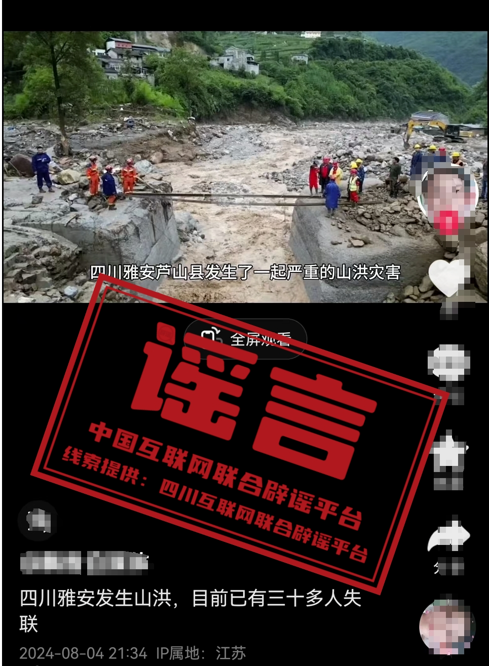 真相:近日,有網(wǎng)民發(fā)視頻稱(chēng),四川省雅安市蘆山縣發(fā)生一起嚴(yán)重的山洪災(zāi)害,目前已有三十多人失聯(lián)。經(jīng)當(dāng)?shù)鼐W(wǎng)信部門(mén)核實(shí),蘆山縣近日未發(fā)生山洪災(zāi)害,也無(wú)人員失聯(lián)等情況。請(qǐng)廣大網(wǎng)民從官方渠道獲取權(quán)威信息,對(duì)于網(wǎng)絡(luò)來(lái)源不明信息,不得隨意轉(zhuǎn)發(fā)或發(fā)布。(來(lái)源:四川互聯(lián)網(wǎng)舉報(bào)辟謠平臺(tái)、蘆山融視聽(tīng))