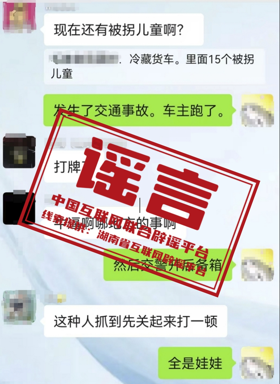 謠 言 一冷藏車?yán)锇l(fā)現(xiàn)15名被拐兒童?