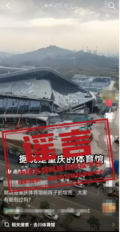 真相:近日,某網民發(fā)布信息稱“據說是重慶體育館前陣子塌荒了”,并配發(fā)有圍擋的體育館外景圖片,引發(fā)關注。經當地網信部門向相關部門核實,網傳信息系謠言。重慶未發(fā)生類似事件,網傳圖片實為重慶市合川區(qū)體育中心在建場景。該體育中心已于2024年4月17日竣工交付,并成功舉辦了重慶市第七屆運動會。調查發(fā)現(xiàn),關于“重慶體育館坍塌”的謠言最早出現(xiàn)在2023年9月,屬地相關部門也對此進行過辟謠。網民為博取關注、吸引流量翻炒“老謠”,故意編造“重慶體育館坍塌”謠言。目前,警方正對造謠網民展開調查。(來源:“重慶辟謠”微信公眾號)