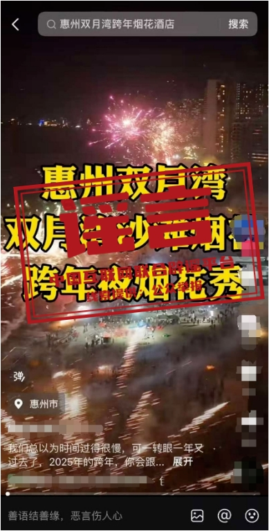 謠 言  廣東惠州雙月灣將舉辦跨年夜煙花秀?