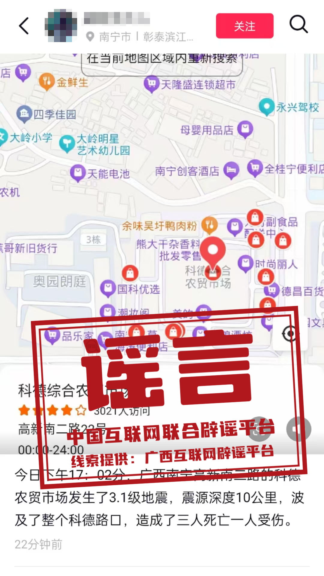 謠 言 廣西南寧發(fā)生3.1級(jí)地震?