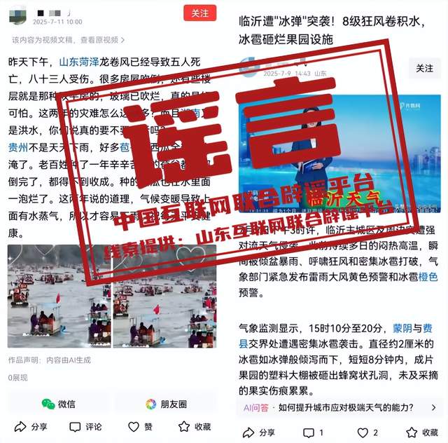 真相:7月11日,有個(gè)別自媒體賬號發(fā)布信息稱“昨天下午,山東菏澤龍卷風(fēng)已經(jīng)導(dǎo)致五人死亡,八十三人受傷”并配發(fā)相關(guān)圖片,引發(fā)關(guān)注。經(jīng)核實(shí)查證,菏澤市7月10日并未發(fā)生龍卷風(fēng),網(wǎng)傳消息系謠言。此外,另一自媒體賬號近日發(fā)布“臨沂遭‘冰彈’突襲!8級狂風(fēng)卷積水,冰雹砸爛果園設(shè)施”等信息。經(jīng)向臨沂市氣象部門核實(shí),近期臨沂市未發(fā)生大風(fēng)冰雹天氣,上述信息與實(shí)際情況不符,確為謠言。請廣大網(wǎng)民以氣象部門發(fā)布的信息為準(zhǔn),勿輕信、勿傳播非正規(guī)來源或未經(jīng)證實(shí)的信息。(來源:山東省互聯(lián)網(wǎng)違法和不良信息舉報(bào)中心)