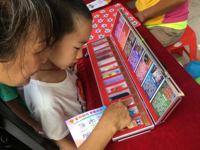 親子家庭在禁毒志愿者的引導下進行禁毒小游戲.jpg