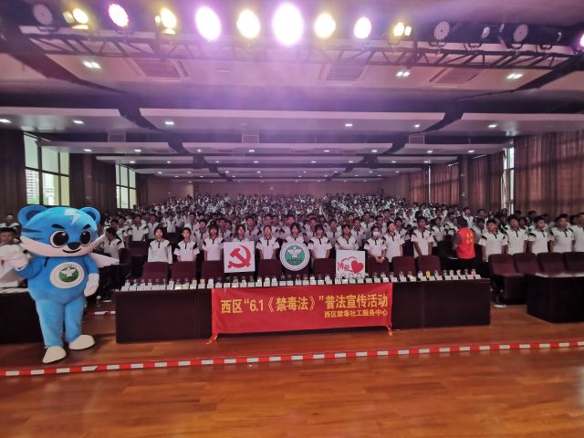 活動過程中,西區(qū)禁毒社工以禁毒故事真人圖書館的形式,向?qū)W生們介紹了毒品的來歷,再結(jié)合現(xiàn)場講解毒品知識,通過有獎問答環(huán)節(jié)讓同學們深刻的認識到毒品對個人、家庭以及社會帶來的嚴重危害,增強拒毒、防毒的能力,為打贏新時代禁毒人民戰(zhàn)爭貢獻力量。隨后禁毒社工帶領(lǐng)全體學生進行莊嚴宣誓,宣誓完畢后,社工利用禁毒模具現(xiàn)場為學生們講解毒品種類和危害,分享戒毒康復(fù)實例,西區(qū)街道禁毒社工讓學生們在互動過程中潛移默化學習禁毒基本知識,寓教于樂。