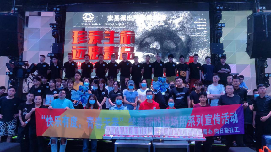 為進(jìn)一步加強(qiáng)公共娛樂場所禁毒宣傳力度,積極營造良好的公共娛樂場所環(huán)境,提高娛樂場所服務(wù)人員禁毒意識(shí), 7月13日下午,石岐街道禁毒辦向日葵禁毒社工聯(lián)合宏基派出所開展“快樂有度,青春無‘毒’”禁毒預(yù)防進(jìn)場所系列宣傳活動(dòng),派出所民警組織GOG CLUB酒吧近200名酒吧工作人員積極參與。